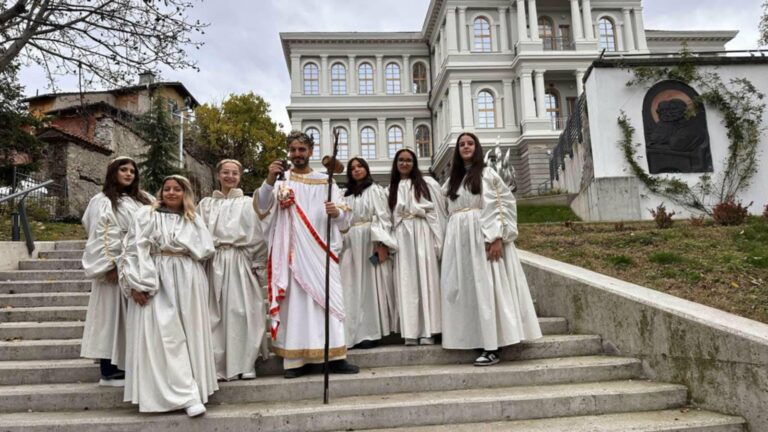 В духа на традицията момичетата от ПГХТТ се преобразиха във вакханки и заедно с бог