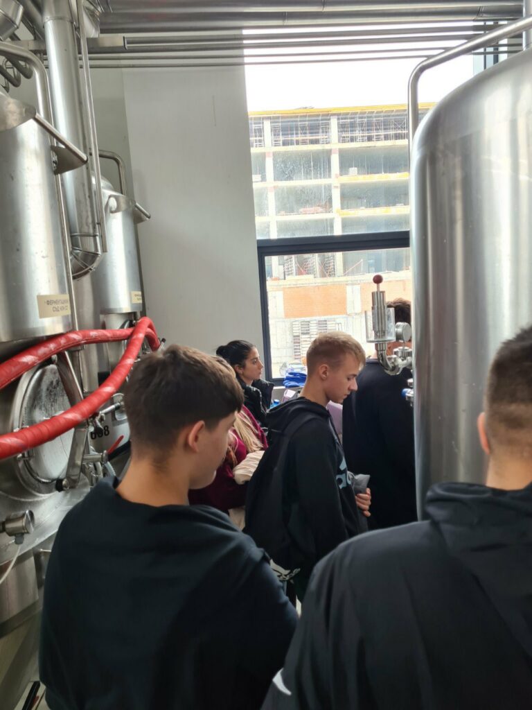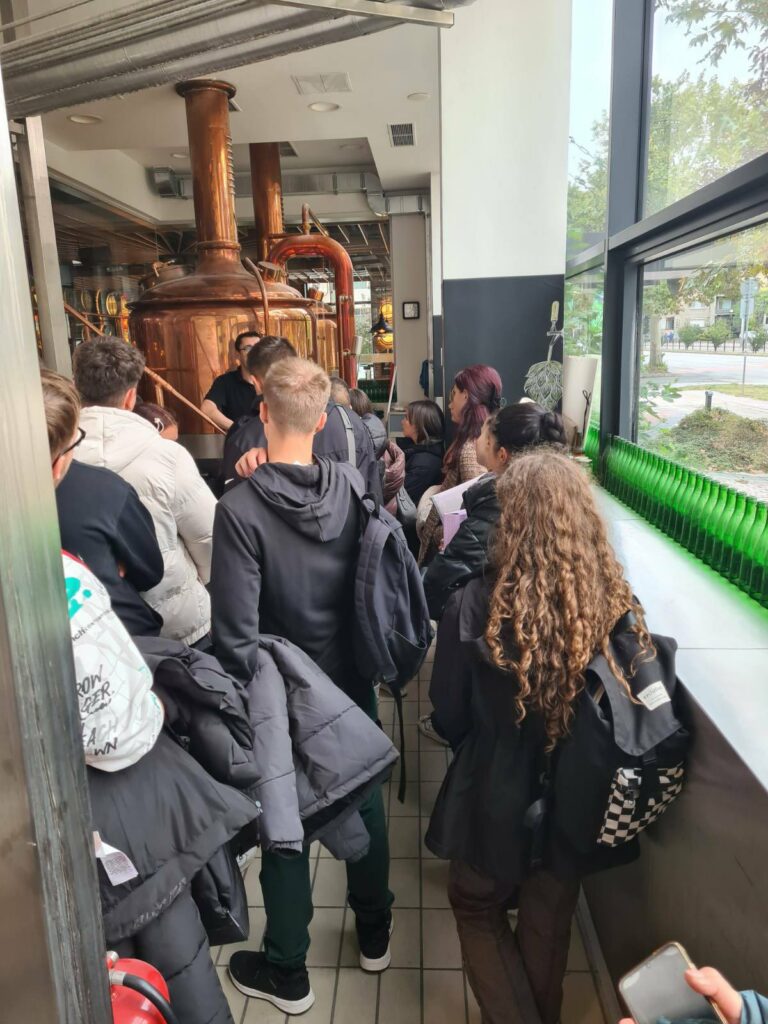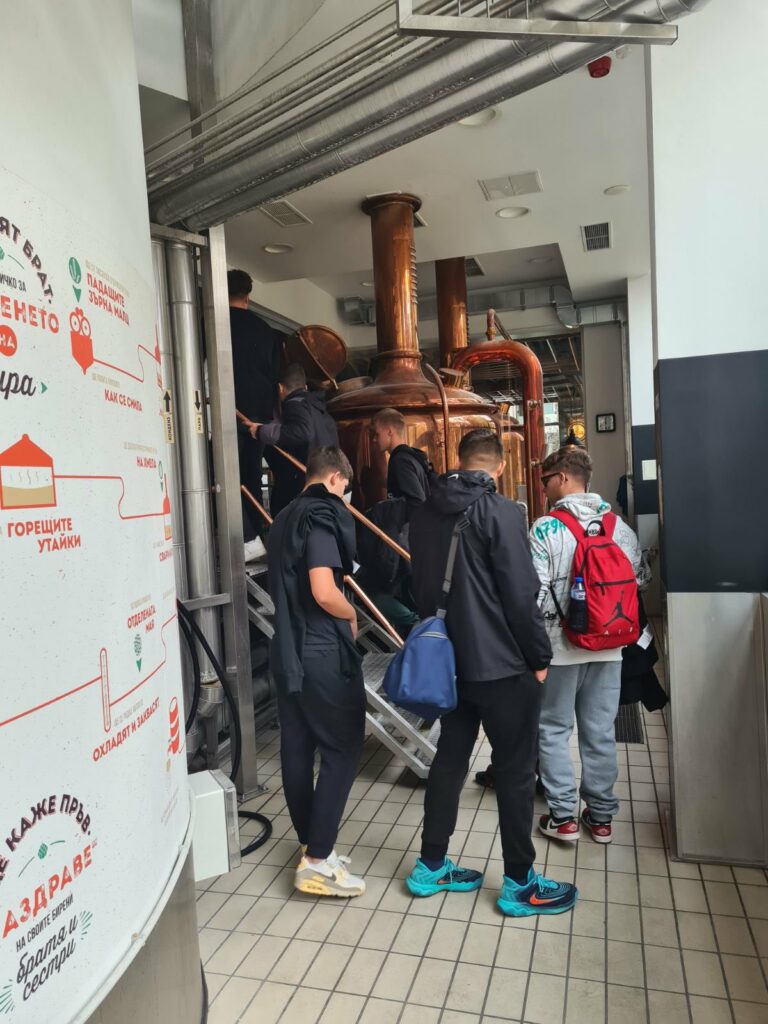 Учениците от 11. клас, специалност „Технология в биопроизводствата“, проведоха своята учебна практика с вдъхновяващо посещение в Пивоварница „Каменица“ – Пловдив. Там те се запознаха с целия технологичен процес – от подготовката на суровината, варенето на пивната мъст, през ферментацията и съзряването в модерните ферментатори, до охлаждането и бутилирането на готовото крафт пиво. Технологът сподели с учениците тънкости от производството – контрол на температура, време и налягане, ролята на маята и важността на хигиената в пивоварството. Всеки имаше възможност да зададе въпроси и да види как теорията от часовете по “Процеси и апарати” оживява в реалната производствена среда. Искрени благодарности на екипа на Пивоварница „Каменица“ в лицето на инж. Иван Карагьозов за топлото посрещане, професионалното отношение и желанието да споделят своя опит с бъдещите специалисти в областта на биопроизводствата!